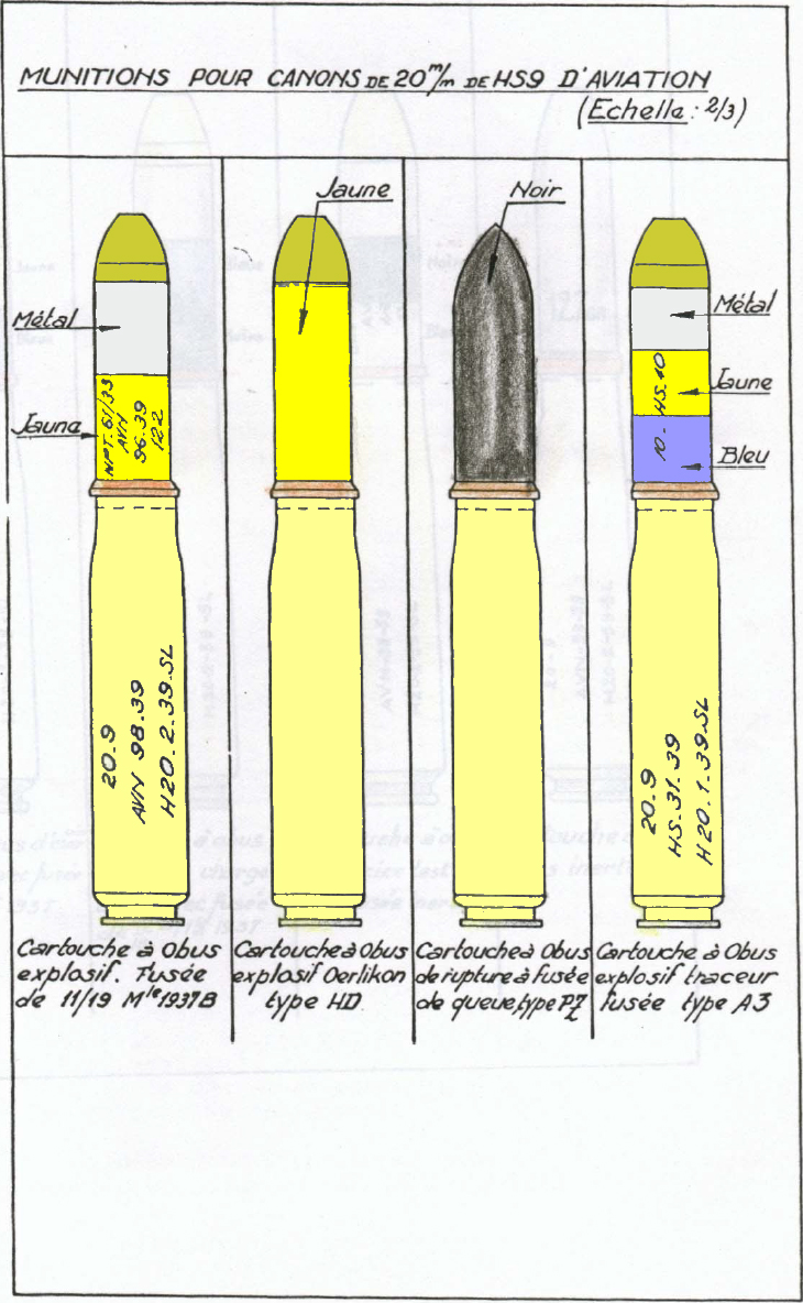 | Calibre: 20x110 APHE Tipo: Perforante Rompedor MK 4Z Arma: Oerlikon Pais: Suizo |