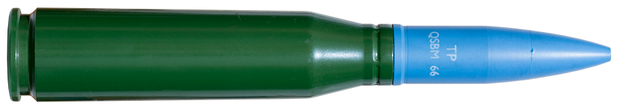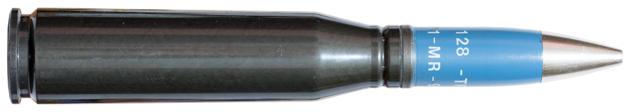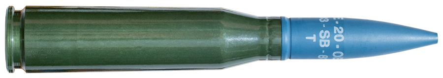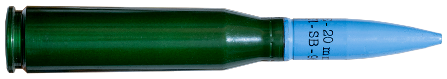 | Calibre: 20x128mm (Marcaje Santa Barbara) Tipo: Ejercicio trazador, pintura azul teflonada mate Arma: Oerlikon 20/120mm modelo 10 I La/5TG Pais: España |