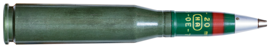 | Calibre: 20x128mm HEI-T/SD Tipo: alto explosivo incendiario Trazador Autodestructivo Arma: Oerlikon 20/120 Pais: España |