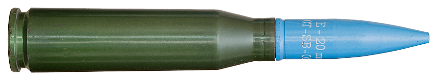 | Calibre: 20x128mm Tipo: Ejercicio / marcaje en blanco Arma: Oerlikon 20/120mm modelo 10 I La/5TG Pais: España |
