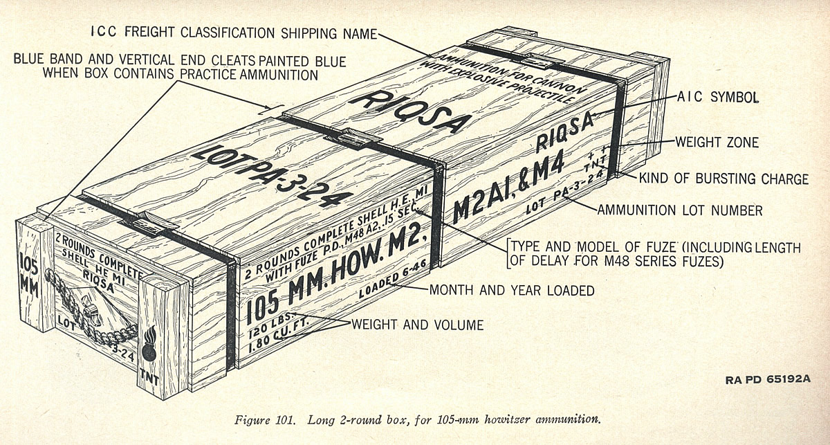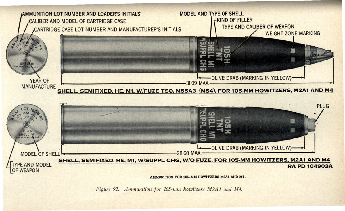 El M101 disparó 105 mm HE semi-fijo munición y tenía un alcance de 11.200 m, por lo que es adecuado para soportar la infantería. Todas estas cualidades importantes del arma, junto con su amplia producción, llevó a su adopción por muchos países después de la guerra. Su tipo de munición también se convirtió en el estándar para muchos modelos de países extranjeros posteriores. |