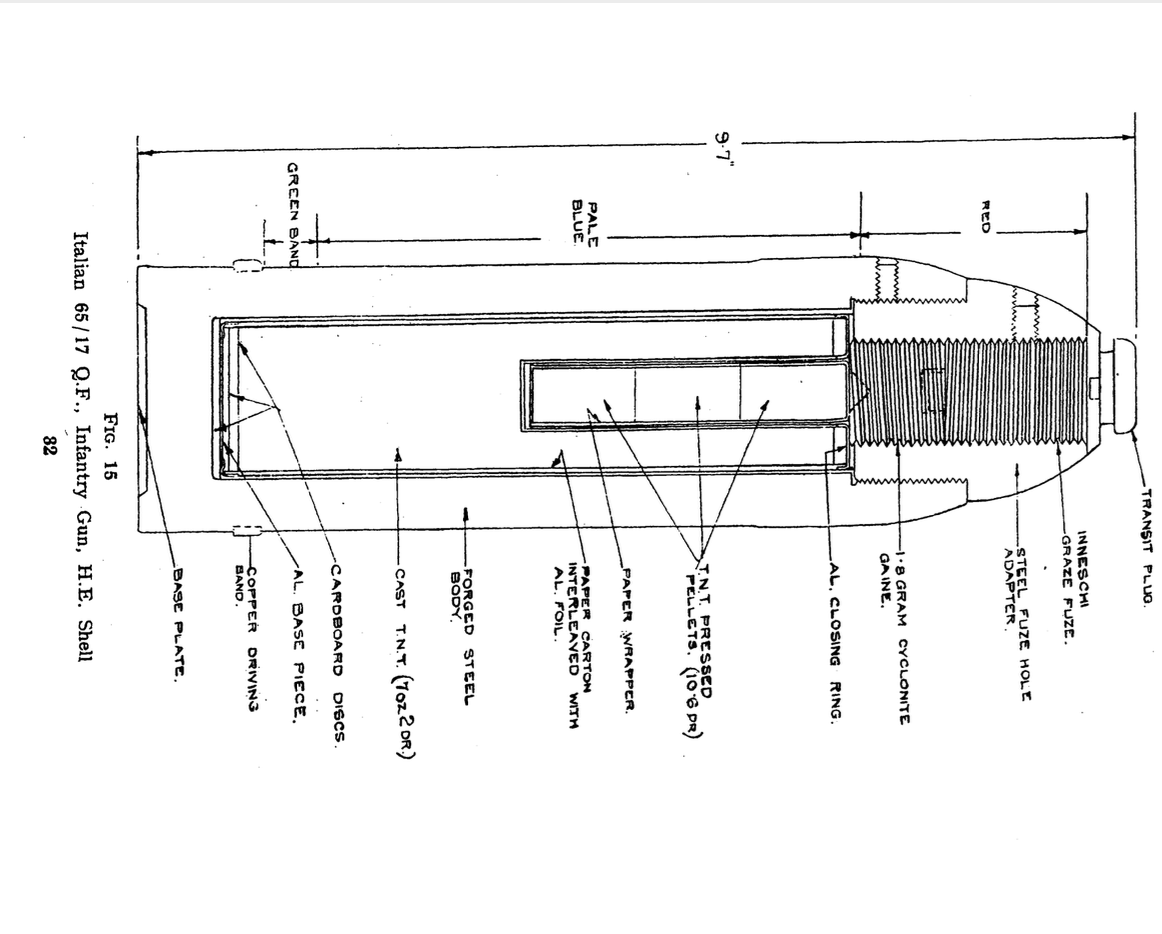 65/17, Q.F., S.E. los dispara el cañon de 65mm 17 de montaña